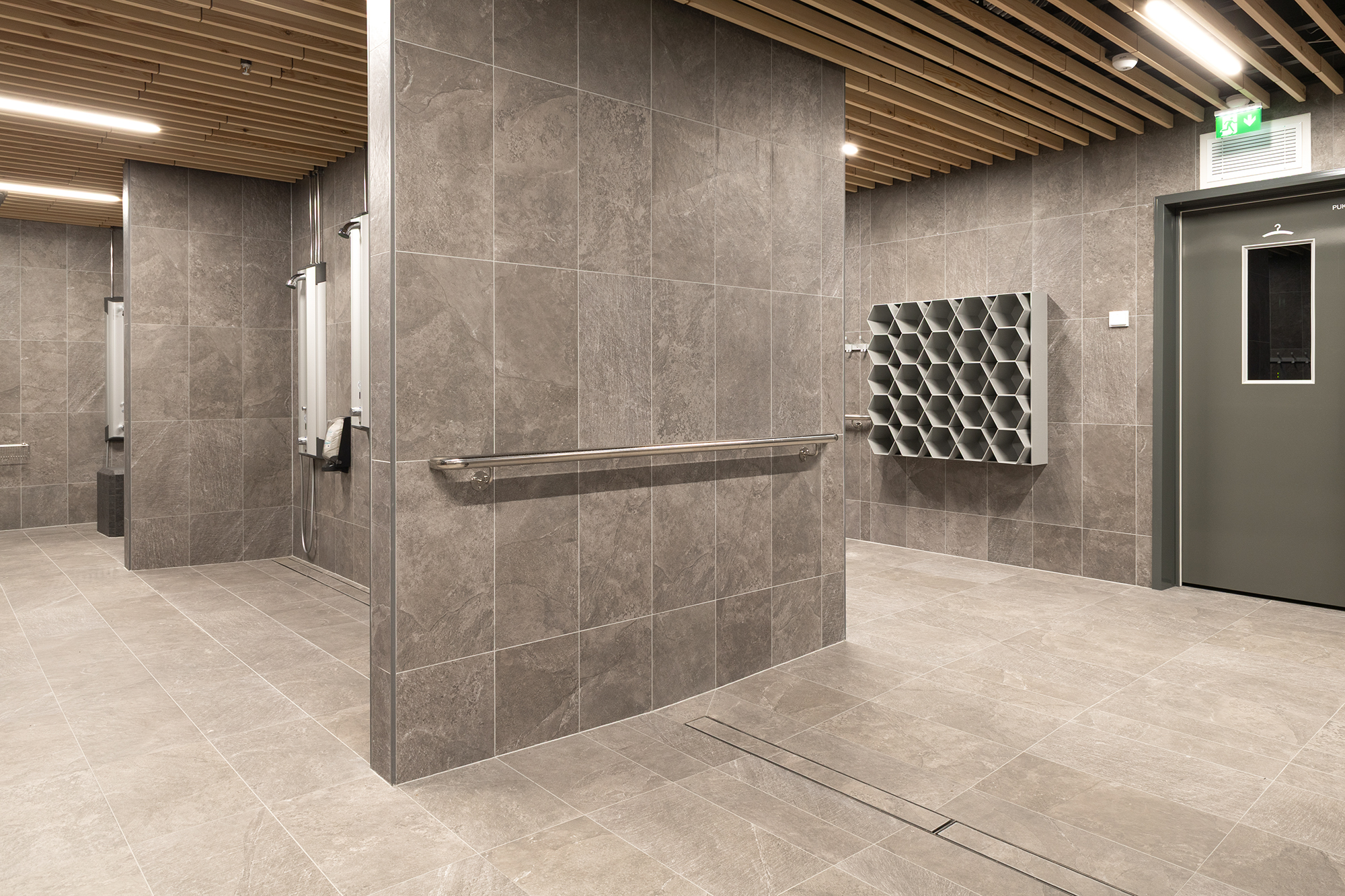 En viktig del av anlegget er den toppmoderne svømmehallen og idrettshallen. Sammen gir de regionen et løft innen både folkehelse og aktivitetstilbud. Purus har levert rustfrie gulvrenner i bassengområdet og garderobene, nærmere bestemt den stilrene og funksjonelle Purusrenne 100 Tile Insert. Vi er stolte over å ha bidratt med løsninger som tilfredsstiller både designkrav og høye tekniske standarder i dette signalprosjektet.